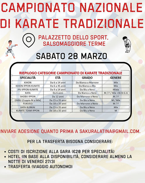 - Sabato 28 MARZO: CAMPIONATO NAZIONALE DI KARATE TRADIZIONALE, Salsomaggiore Terme